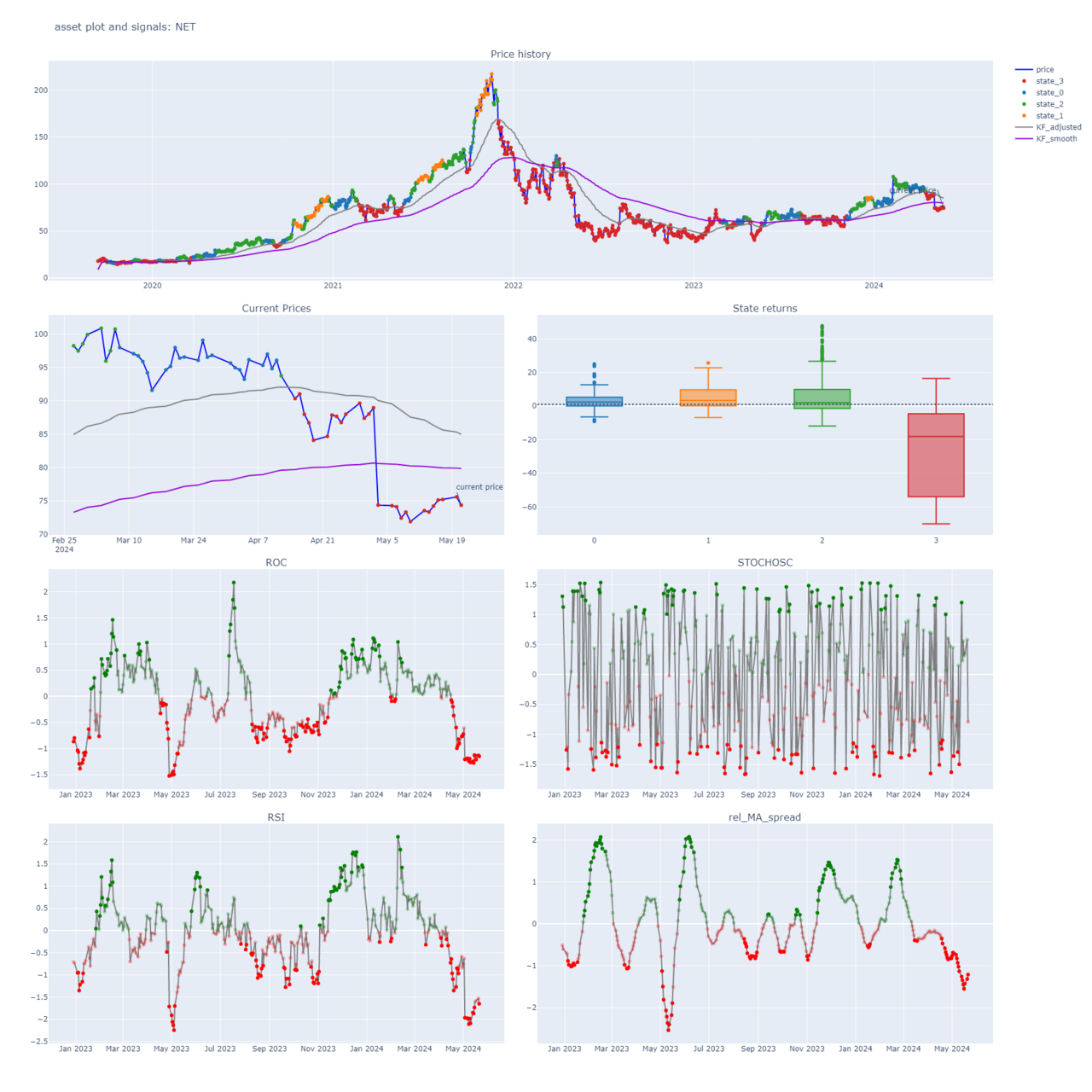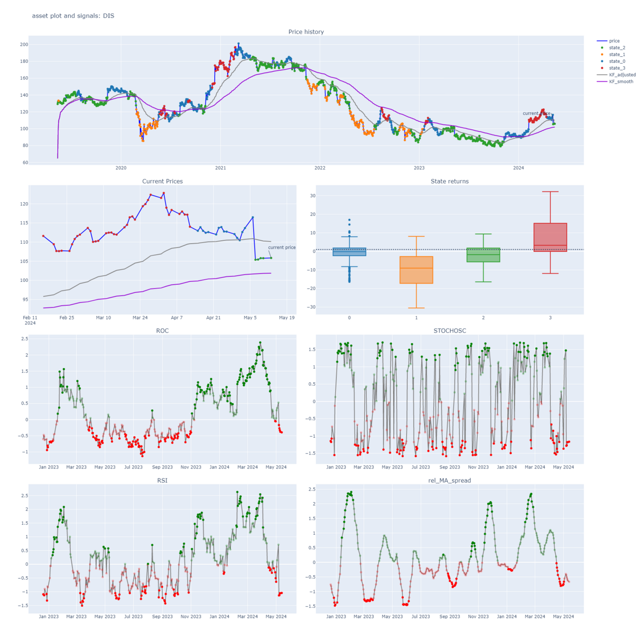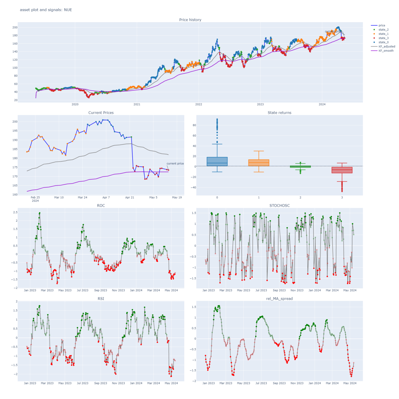 we are in state 0 which is a state with positive returns, but we are in the day 21 of this state (the state 0 durations median is 25 and 75 percentile is 46 days)